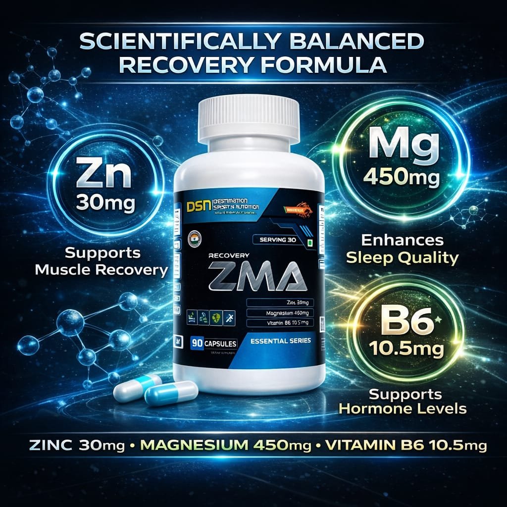 Experience the potent benefits of the DSN Essential Series ZMA Recovery, a cutting-edge formula designed with essential doses of Zinc, Magnesium, and Vitamin B-6. Tailored for promoting bedtime recovery, this supplement helps your body regain strength and prepare for peak performance.